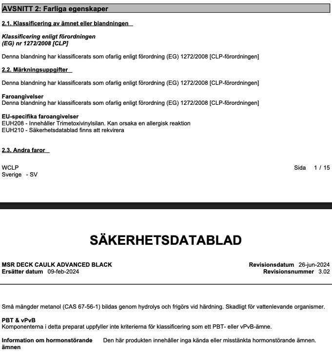 | Produktnamn | Simson® MSR Deck Caulk |
